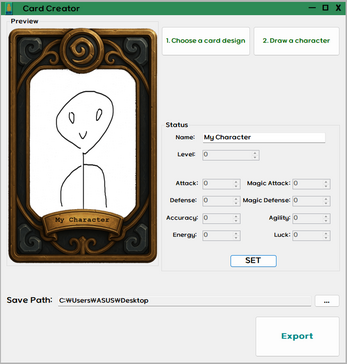 3. Click the "2. Draw a character" button to choose the character image file you want to include.